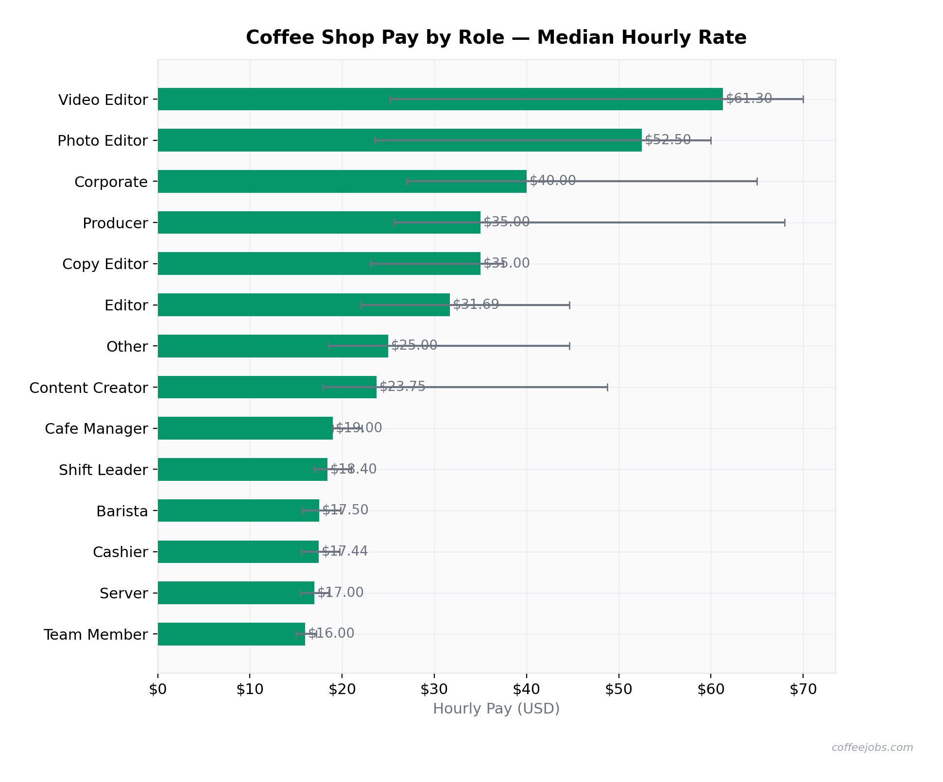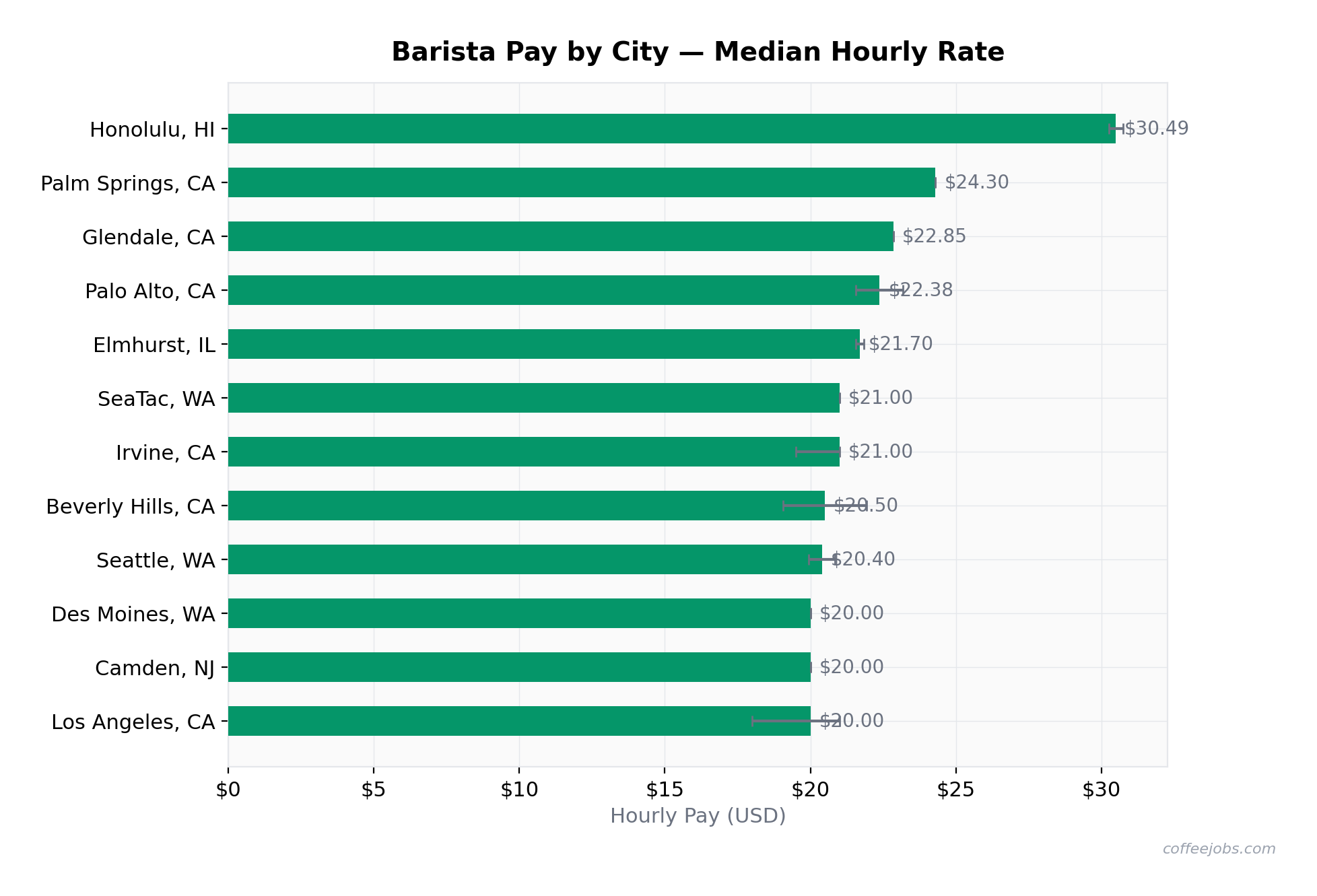 | Barista | $15.75–$19.84/hr | $17.50/hr |